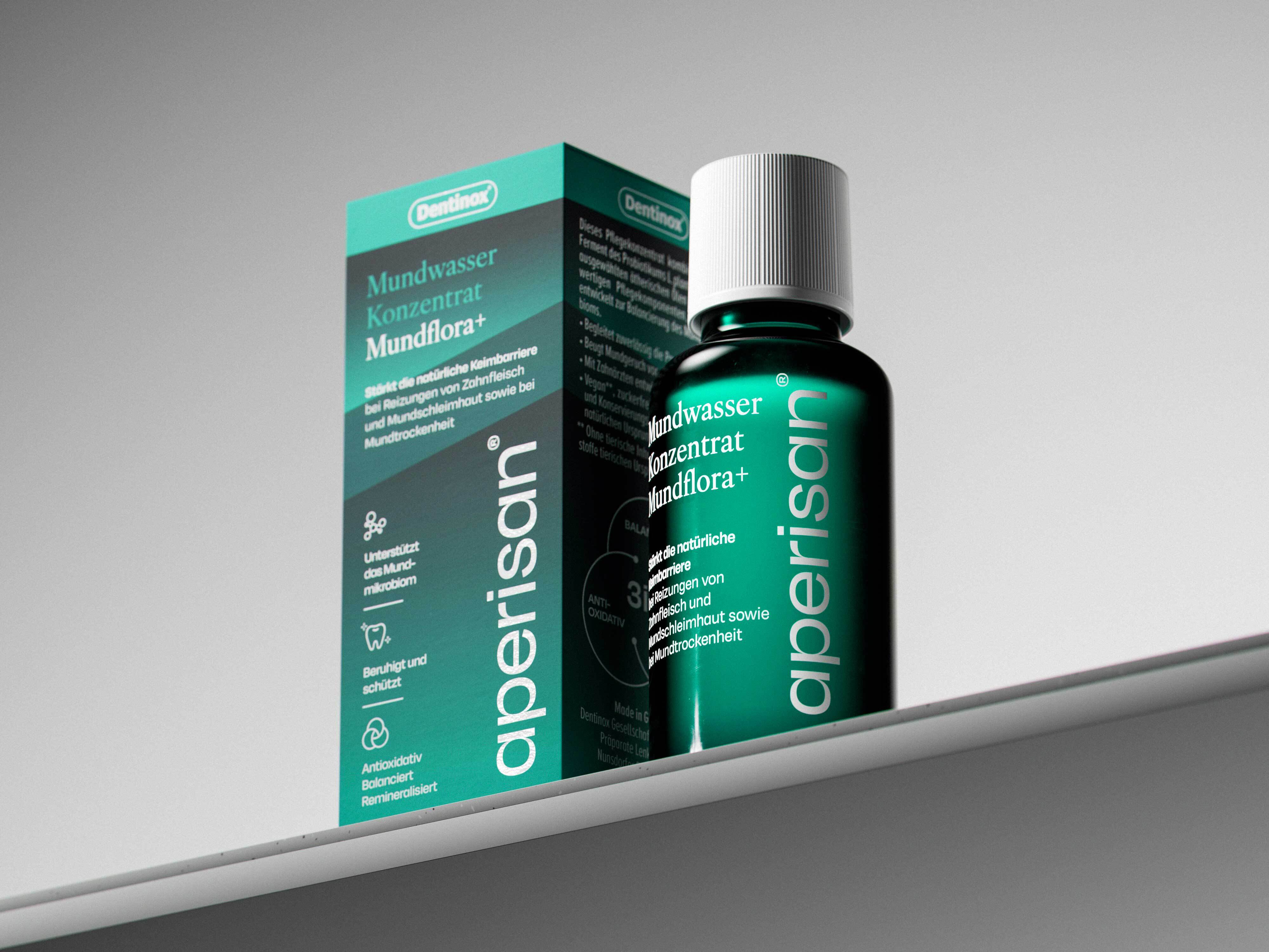 Das schwarze Markenlogo auf weißem Dach hat deutlich an Selbstbewusstsein gewonnen. Das ehemals magentafarbene Markendachfeld wurde in den unteren Packungsteil verlagert. Die harte Kante zur Sortendifferenzierung wurde durch eine weiche, vergrößerte Rundung ersetzt. Um die Indikation zu stärken, haben wir Icons entwickelt die das entsprechende Wirkzentrum - Ohr oder Gehirn - hervorheben.